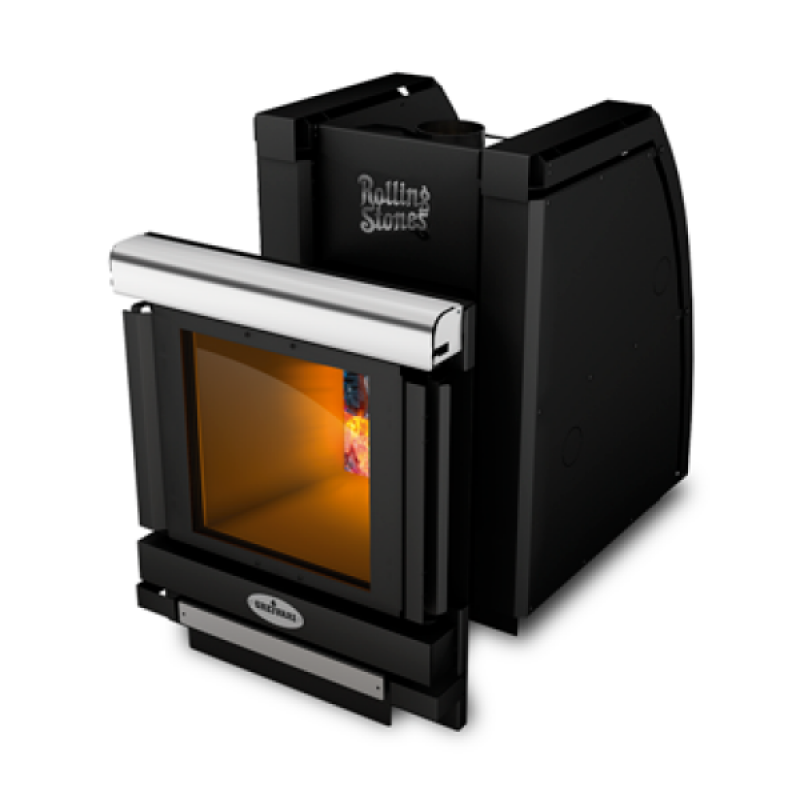 Нестандартная конструкция двери позволяет открывать ее на обе стороны без перевешивания. Диагональ огнеупорного стекла в моделях «Rolling Stones v.2 Intro» — 495 мм.