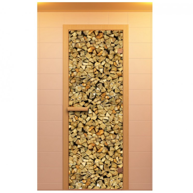 | Дверь для сауны, серия "Дровница", с фотопечатью, стекло бронзовое | |
