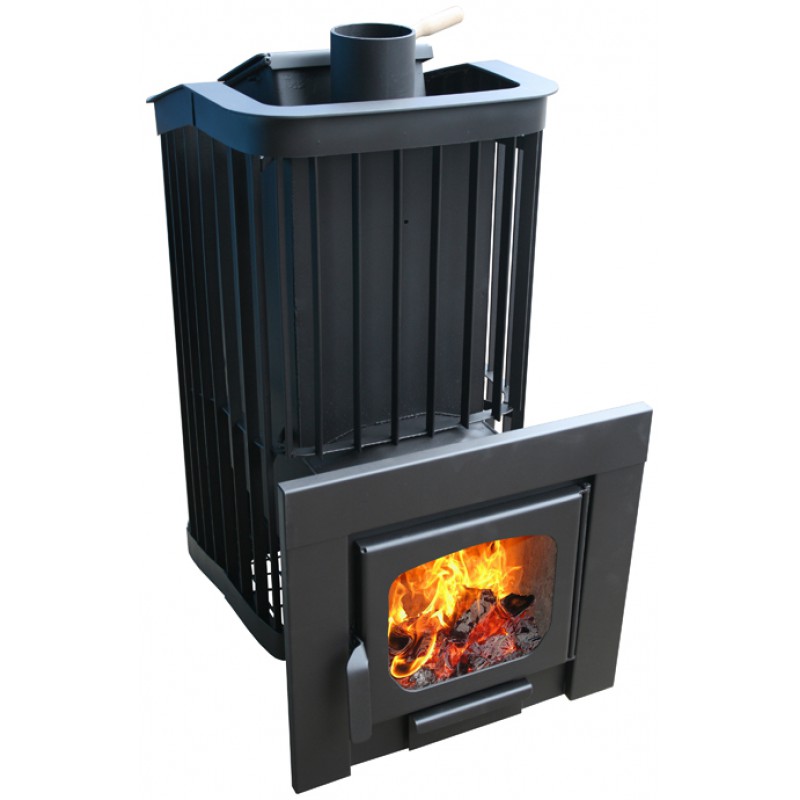 Печь Варвара Терма Каменка мини с сетчатым кожухом для закладки камнем и закрытой каменкой.