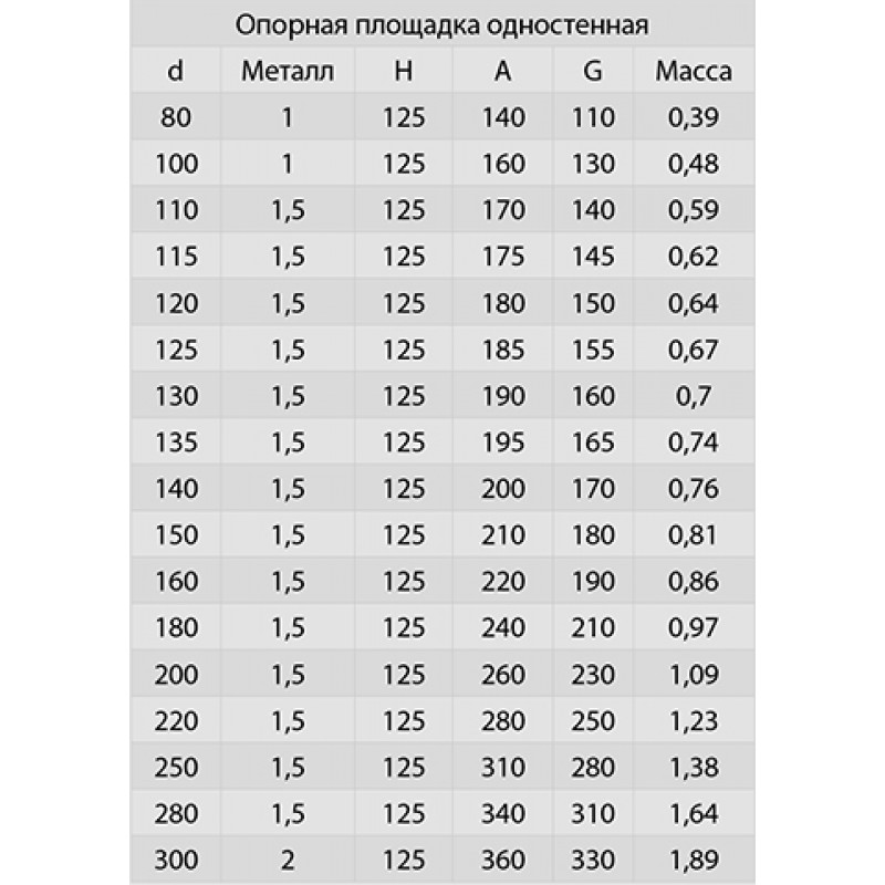 Модель: Площадка монтажная одностенная (439/0,8 мм) Ф130