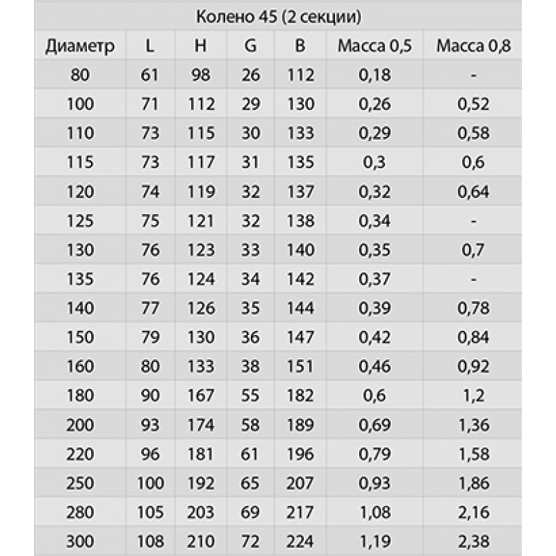 | Колено угол 135° (439/0,8 мм) Ф300 (2 секции) | |