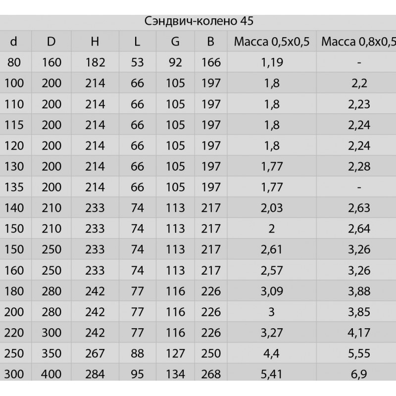 | Сэндвич-колено 135° (439/0,8мм + нерж.) Ф100х200 | |