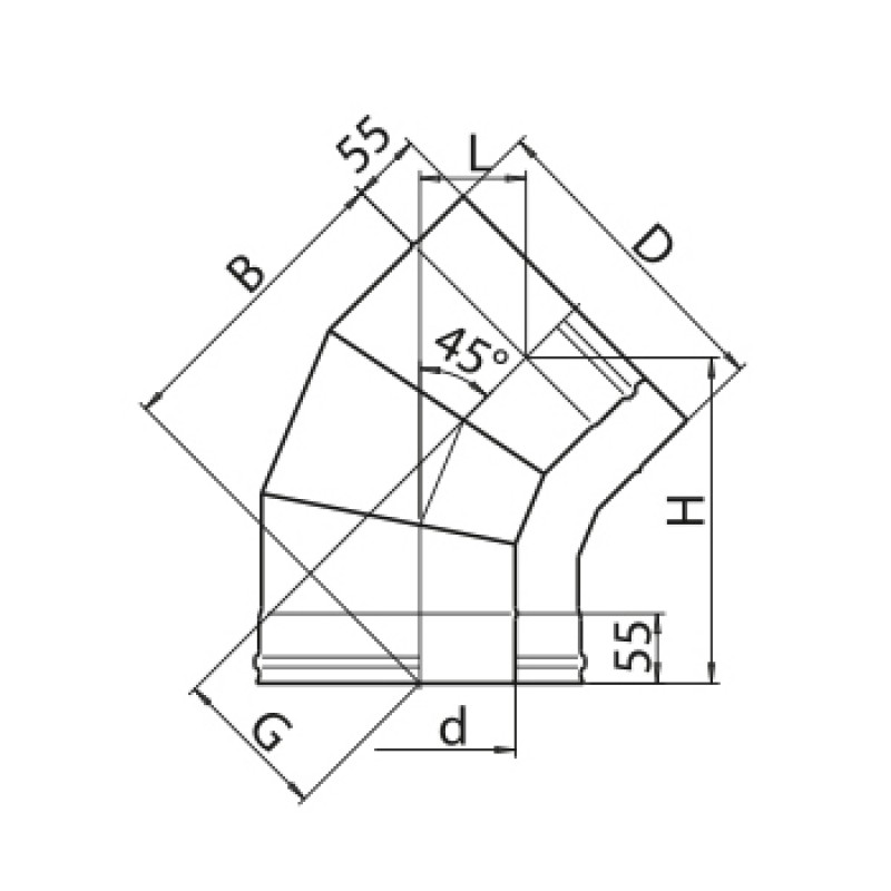 | Модель: | Сэндвич-колено 135° (439/0,8мм + нерж.) Ф100х200 |