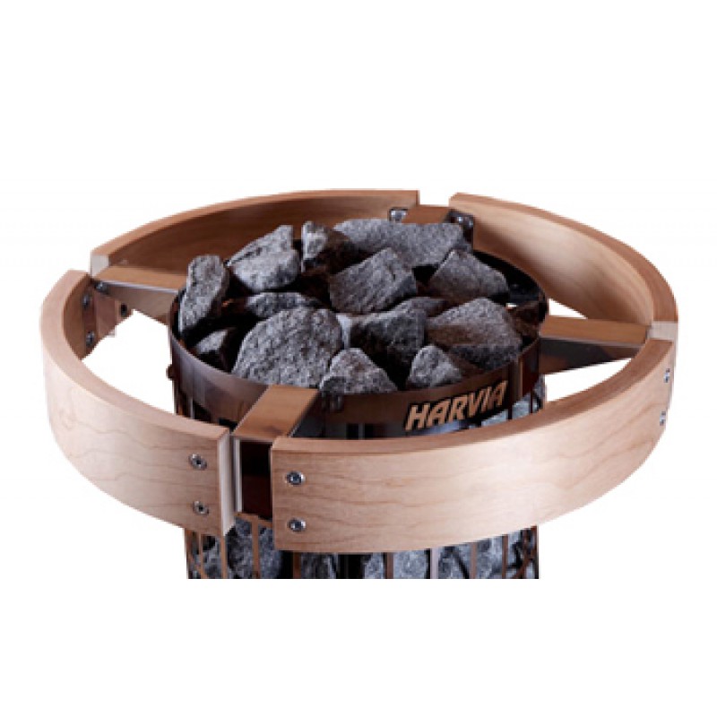 Модное и надежное защитное ограждение состоит из четырех деревянных элементов (аркообразной формы), которые крепятся друг к другу, а также к каменки скобами из нержавеющей стали. Ограждение выполнено из древесины — термообработанная осина.