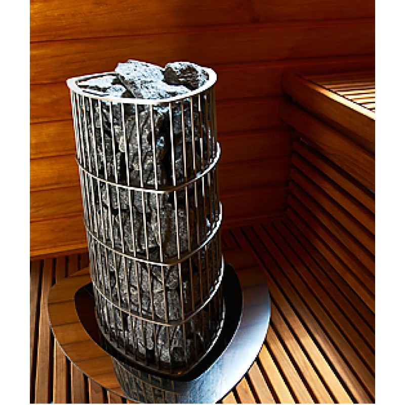 Harvia Kivi можно устанавливать рядом с полками, поскольку температура поверхности каменки остается сравнительно низкой.