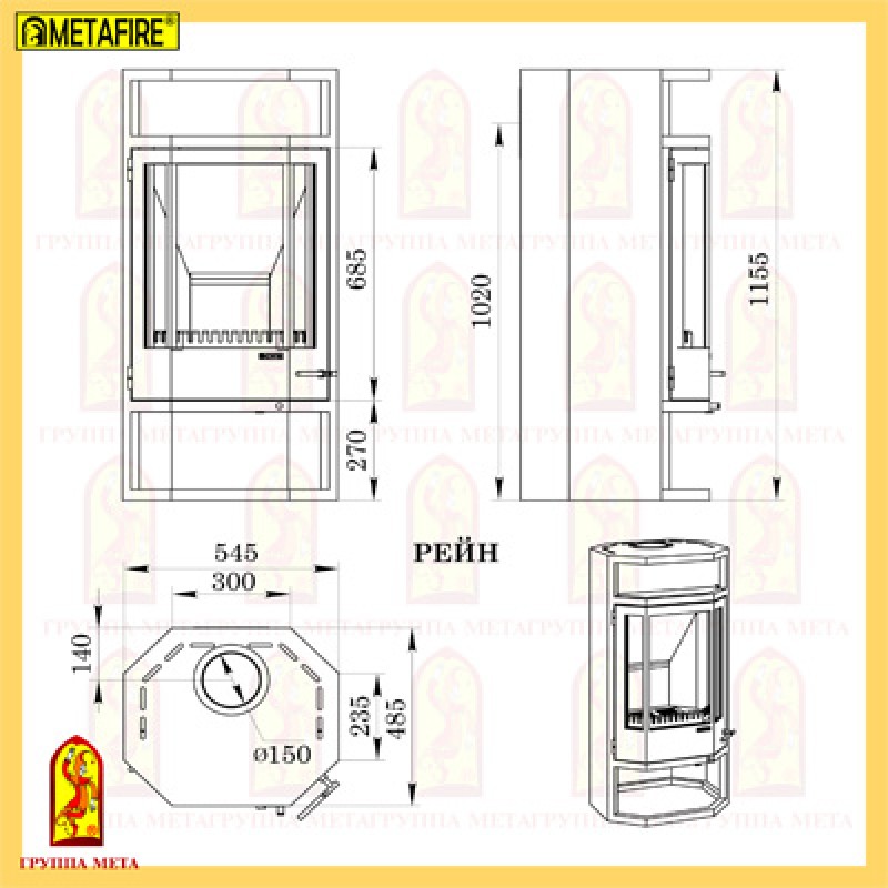 Диам. дымохода: 150 мм