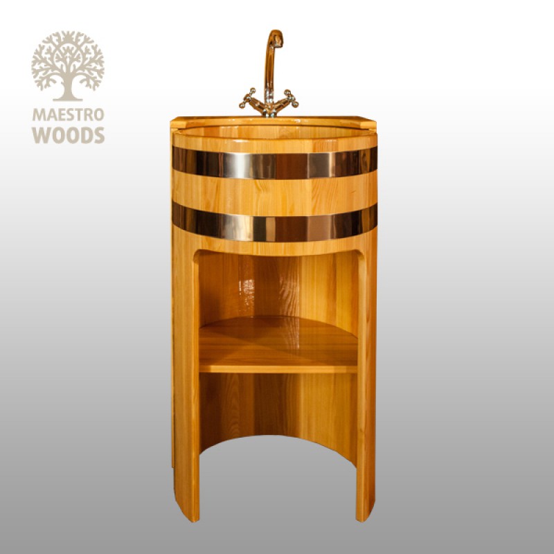 Изготавливается из массива лиственницы, с подставкой для смесителя.