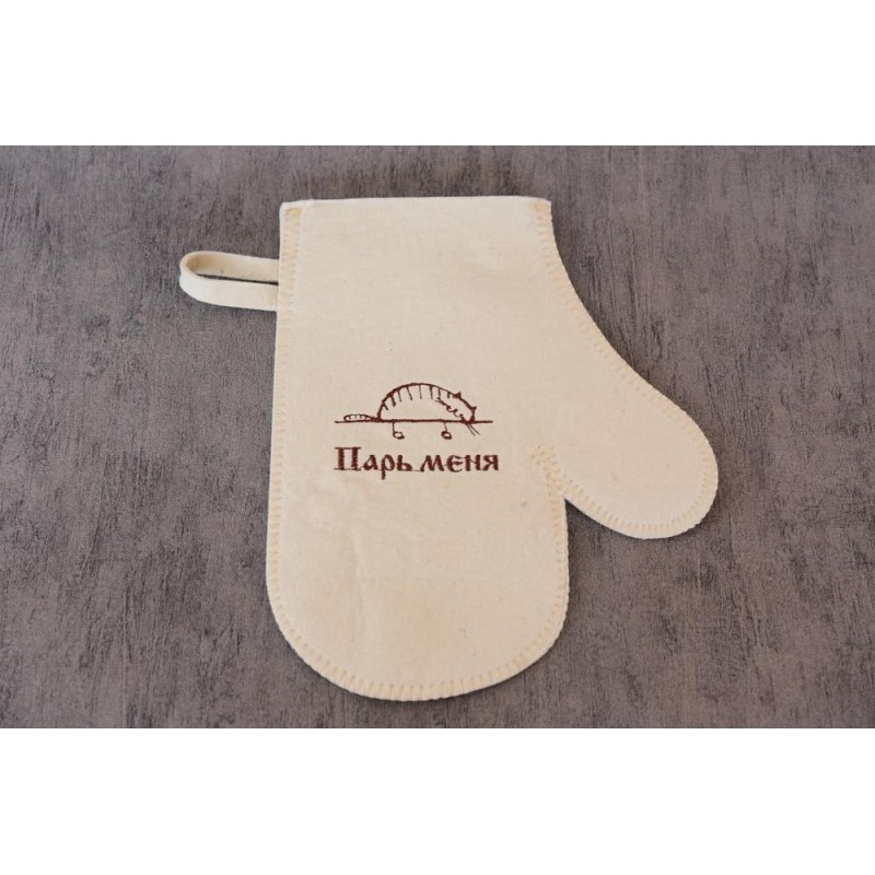 Рукавица 100% шерсть белая Парь меня (вышивка)