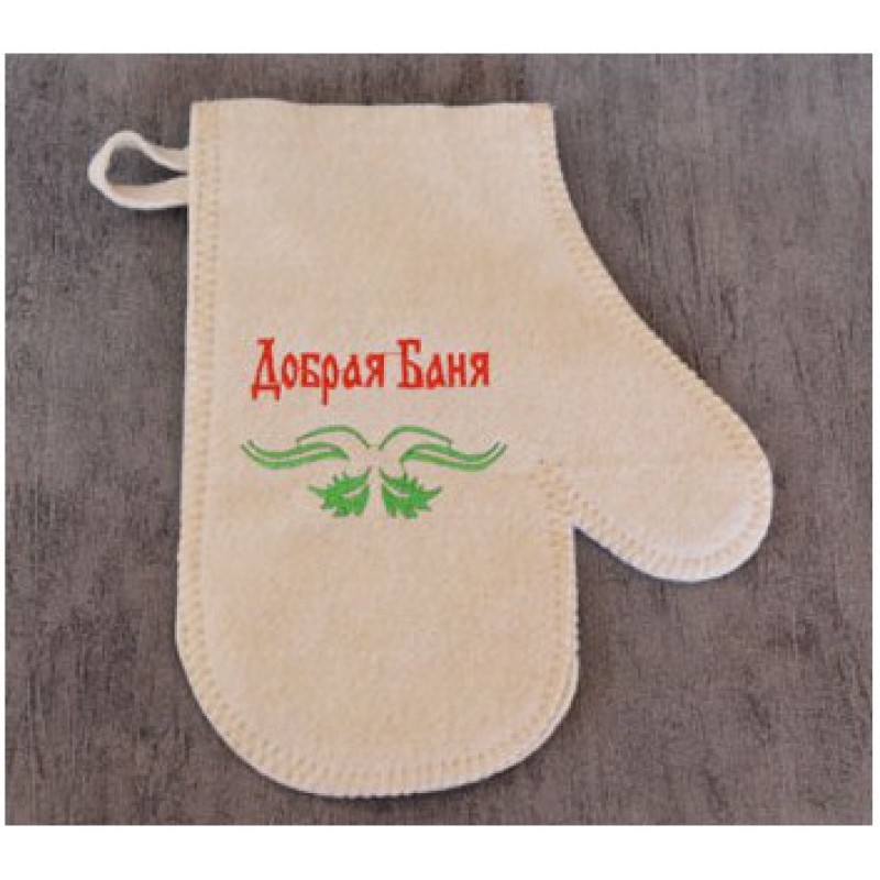 Рукавица П/Ш белая Добрая баня (вышивка)