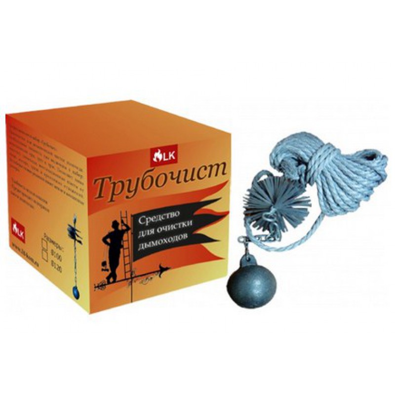 Применяется для механической чистки дымохода. В наборе ерш, груз и трос.