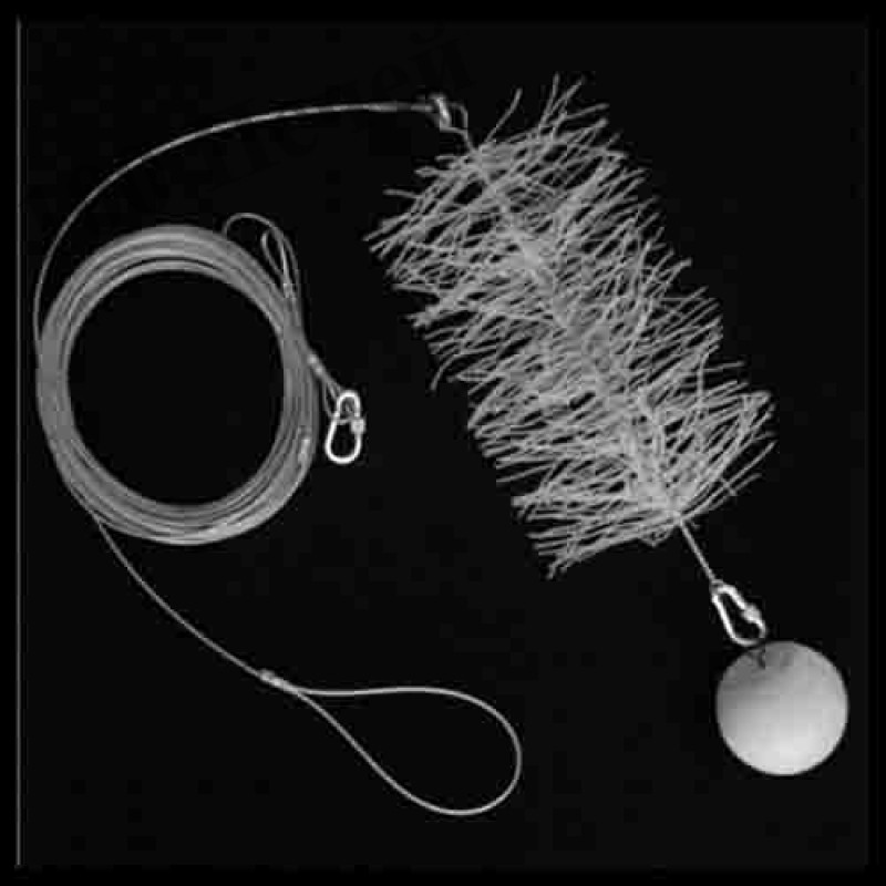 Применяется для механической чистки дымохода. В наборе ерш, груз и трос.