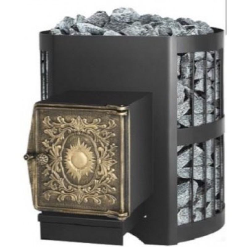 Данная печь имеет высокое КПД, а так же изготовлена из специальной конструкционной стали с элементами топки достигающими 12 мм, которая при высоких температурах не подвергается деформации. Металлическая печь как известно достаточно быстро прогревает помещение, проста в обслуживании и установке. Конвекционно-вентилируемый кожух (сетка) вмещает в себя большое количество камней, которые в свою очередь долго удерживают тепло и не выделяют инфракрасное излучение.