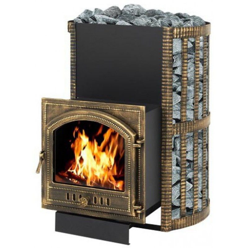 Данная печь имеет высокое КПД, а так же изготовлена из специальной конструкционной стали с элементами топки достигающими 12 мм, которая при высоких температурах не подвергается деформации. Металлическая печь как известно достаточно быстро прогревает помещение, проста в обслуживании и установке. Конвекционно-вентилируемый кожух (сетка) вмещает в себя большое количество камней, которые в свою очередь долго удерживают тепло и не выделяют инфракрасное излучение.