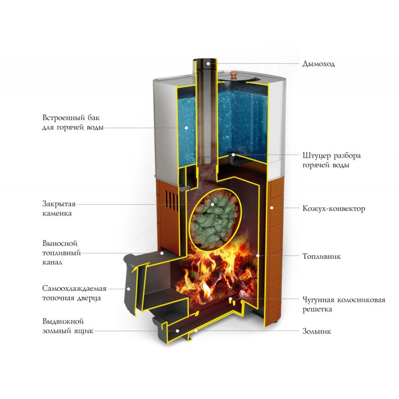 И правда, почему не сделать? Снизу топка из толстолистовой стали, сверху бак из нержавейки, а внутри закрытая каменка. И встанет такая печка на место старой без забот и хлопот. Вот ведь недаром говорят, что все новое – это хорошо забытое старое.