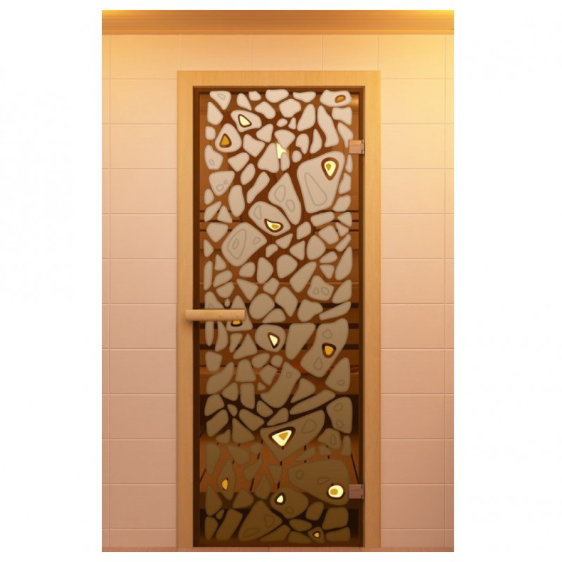 | Дверь для сауны, серия "Морское дно", с фьюзингом, стекло бронзовое | |