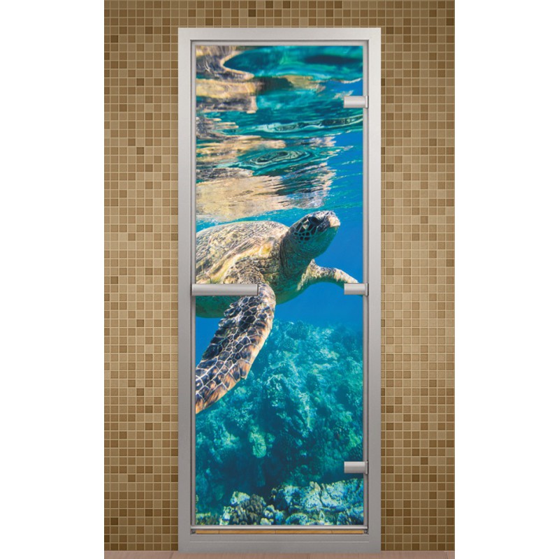 Дверь для сауны ALDO с фотопечатью 690х1890мм, Серия Водный мир коробка из ольхи или березы может визуально заменить мозаику или художественную роспись. С ее помощью интерьер вашей сауны приобретет изысканность и оригинальность, а отдых в бане станет еще более приятным и комфортным. Изображение наносится непосредственно на поверхность дверного полотна в соответствии с технологией, разработанной специально для СПА. Уход за ним предельно прост и не вызывает никаких трудностей, а долговечность и прочность не уступают мозаичным панно.
